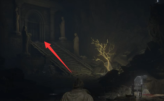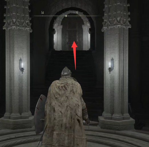 3、我們選擇往左邊走離開,看到一扇大門往那扇大門走去。