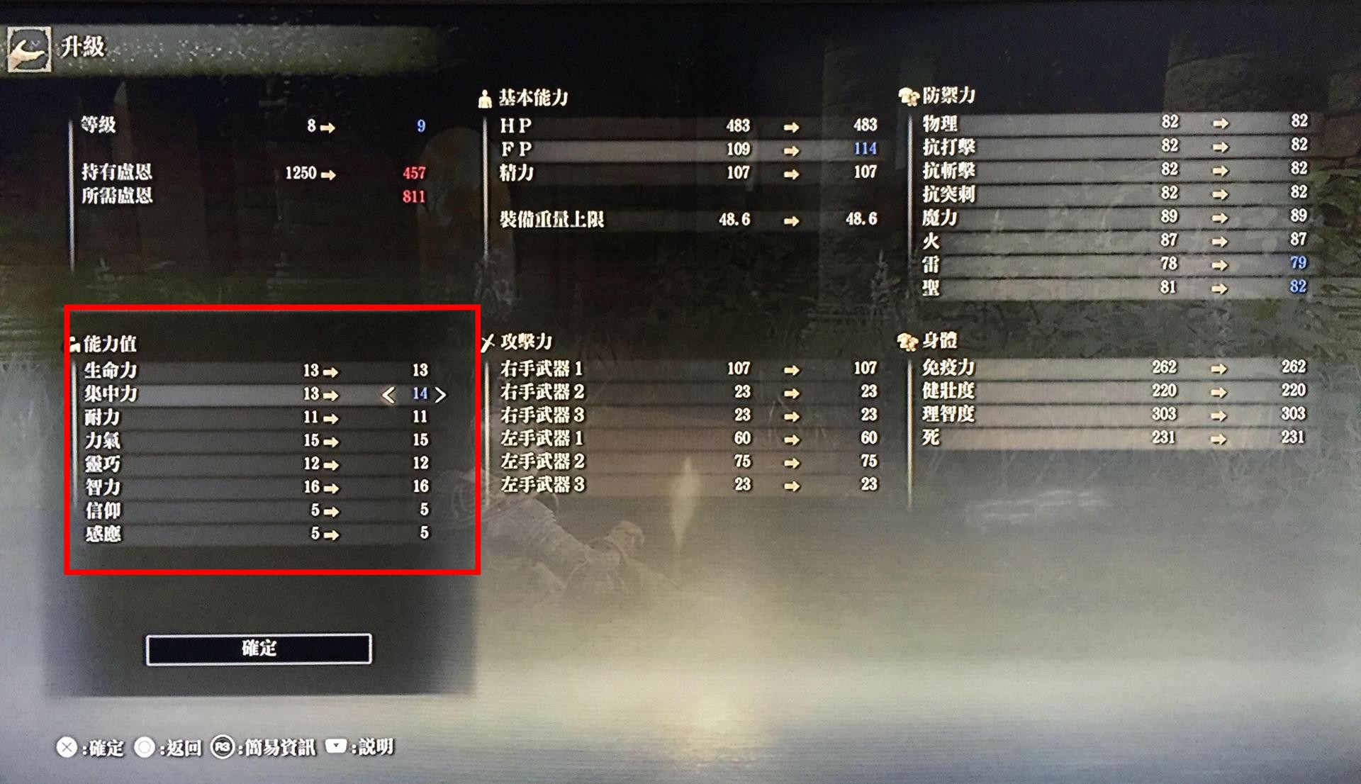 2.血加到20是防止被秒,法環boss攻擊慾望特別強,一套連招都撐不住的話,加智力都是白扯。力量10是因為前期100%物防盾要求是力量10點,附圖。