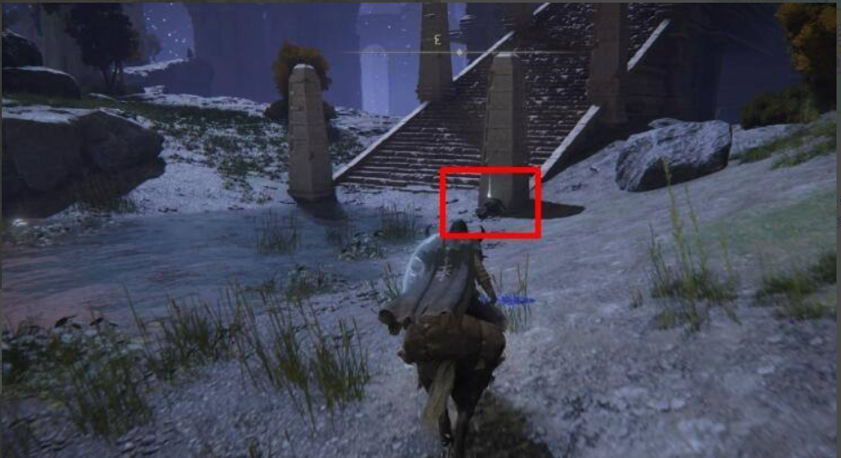 4、來到上方後激活賜福點【希芙拉河岸邊】,隨後在前方台階旁的石柱下可以找到希芙拉河的地圖碎片。