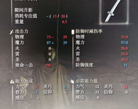 首頁 艾爾登法環 問答 艾爾登法環名刀月隱屬性是什麼? 2022-07-23 艾爾登法環是一款以正統黑暗奇幻世界為舞台的動作RPG遊戲,裡面有著眾多裝備,名刀月隱是一把非常強力的武器,適合法師進行戰鬥,其佩戴需要力氣12、靈巧18、智力23,可以提高物理攻擊和魔力,增加防禦強度,造成出血附加效果。