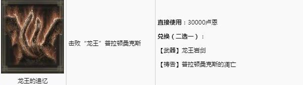 首頁 艾爾登法環 問答 艾爾登法環龍王的追憶換什麼? 2022-07-25 艾爾登法環每一個追憶都可以換不同的東西,龍王的追憶是擊敗龍王普拉頓桑克斯得到的,可以換龍王岩劍【武器】或者是普拉頓桑克斯的調亡【禱告】。