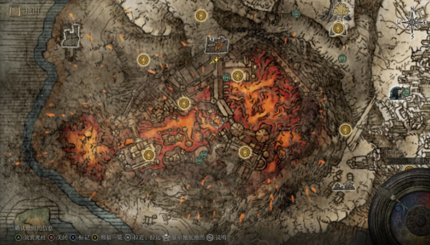 首頁 艾爾登法環 問答 艾爾登法環侍王騎士的決心怎麼拿? 2022-07-26 1.侍王騎士的決心位置在火山裡,當你把圖裡白圈位置的熔岩吊橋機關打開,過橋進房子就可以找到了,地圖位置如下圖所示。2.侍王騎士的決心可以讓下次傷害增傷80%,不能收掉武器,所以建議左手拿法杖 右手用一把劍附魔決心戰灰。