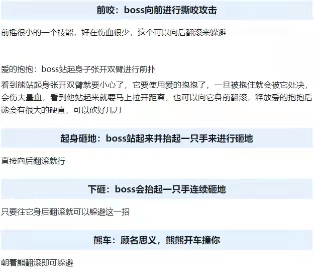 2、注意這巨熊~會連續揮掌攻擊玩家,一般會揮打兩次向前翻滾可以滾到它身子底下,直接輸出可。