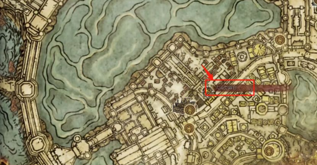 1、首先,運行艾爾登法環打開地圖,選擇大道旁露台,點擊傳送。