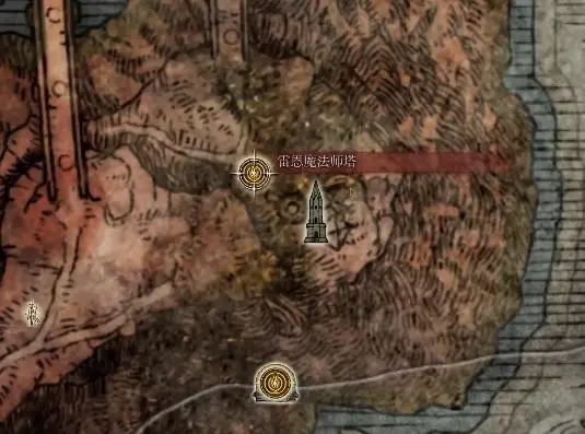 艾爾登法環雷恩魔法塔在蓋利德的東邊。如下圖所示。這個法師塔的雕像損毀了所以不能靠解謎過關,面對塔右邊有一個上升氣流,靠著這個氣流飛到塔的後方陽台上面。就能夠進去獲得記憶石,記憶石本身不是很難拿,麻煩的是走過來的路上有龍又有陷阱球,要注意安全。