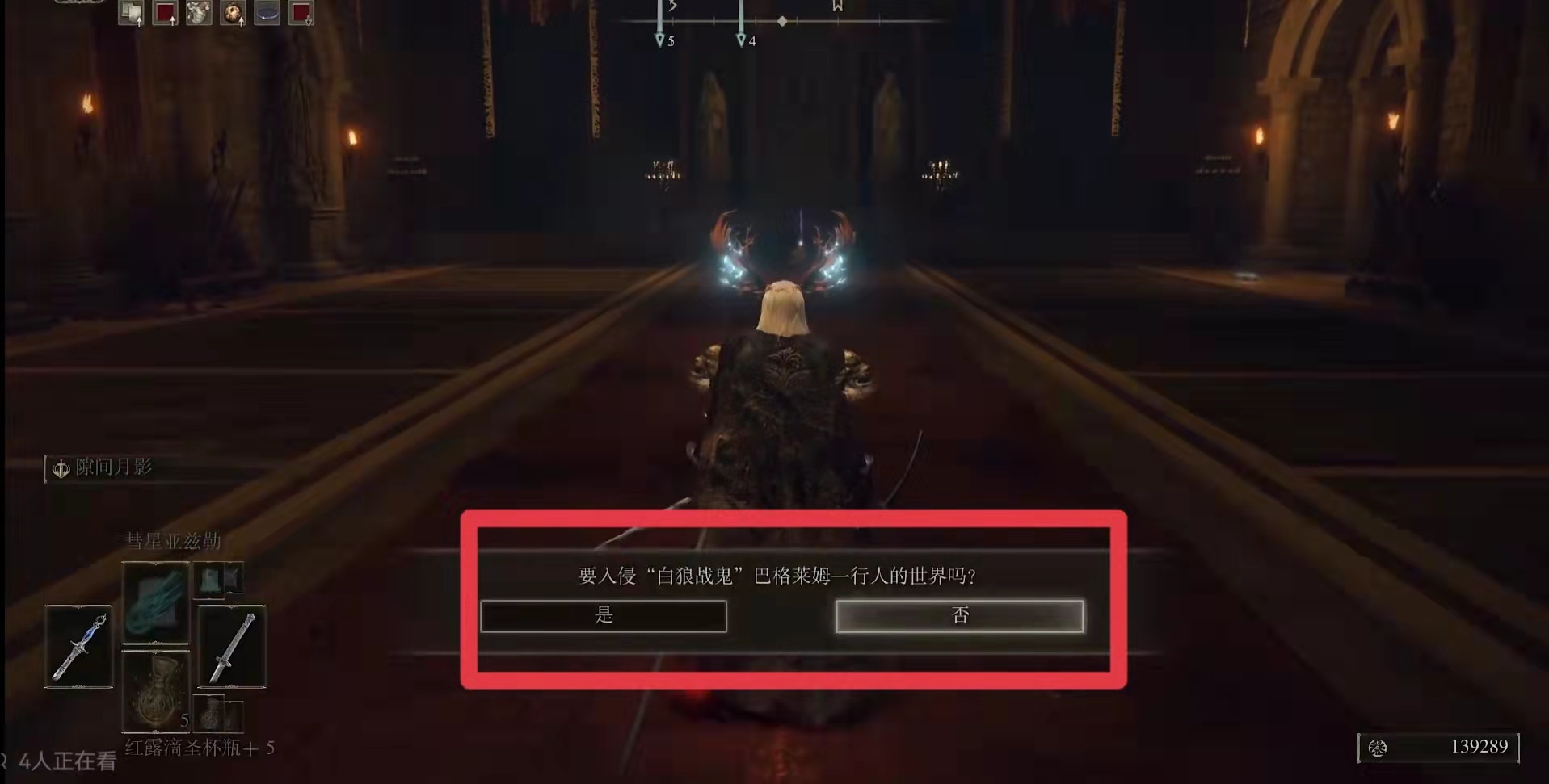 3.進入門內後繼續前進點擊前方傳送點,點擊後就會顯示玩家是否要進入』『白狼戰鬼』『巴格萊姆的世界,玩家點擊』『是』『。
