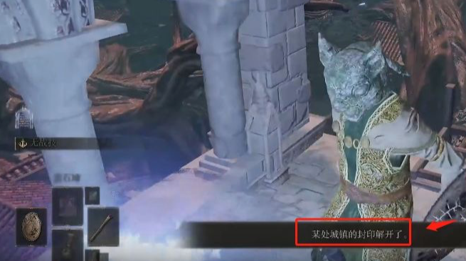 2:其次,傳送到位置後,在封印門前方,看到一個塔。
