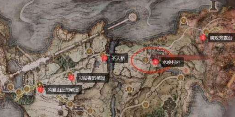 首頁 艾爾登法環 問答 艾爾登法環水喚村位置在哪? 2022-07-27 在下圖中有個賜福點,那裡是聖人橋,橋上有個很菜的南瓜頭,有幾率掉落鍛造石碎片,從左邊穿過橋就來到了東部區域,沿著大路走即可找到水喚村。
