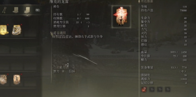 首頁 艾爾登法環 問答 艾爾登法環維克的龍雷怎麼用? 2022-07-27 龍雷可以給人附魔,然後可以切武器給武器上別的附魔,23信仰加了10總負重 ,龍雷提升的傷害和雷劍是一樣的,實戰中的作用是很大的,詳細屬性如下圖所示。