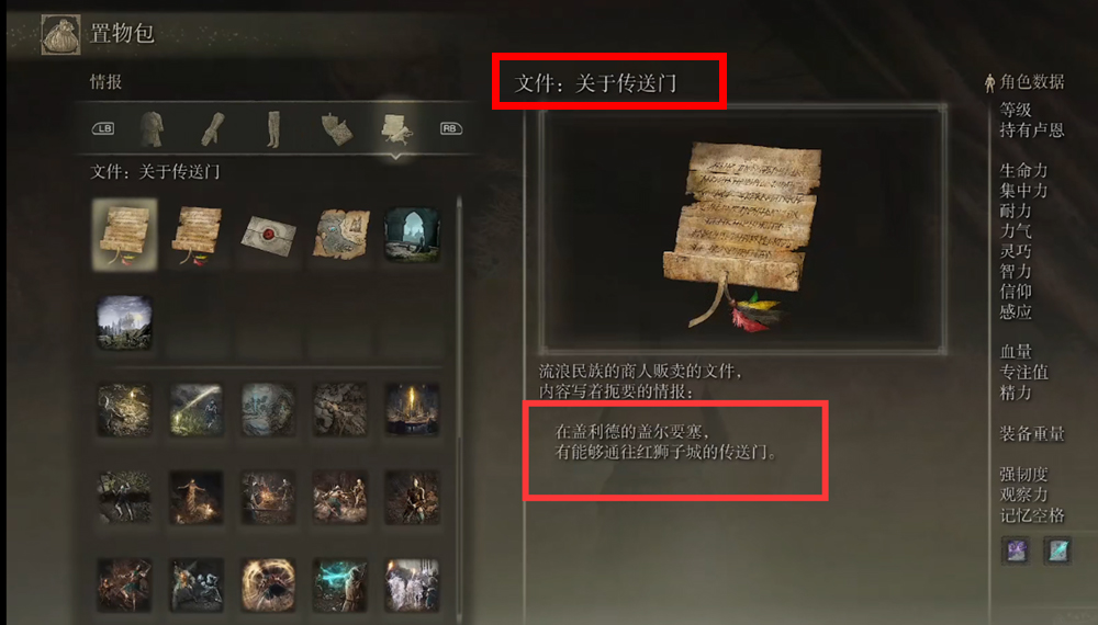 首頁 艾爾登法環 問答 艾爾登法環文件有什麼用? 2022-07-28 艾爾登法環遊戲中文件是一種情報類道具,通常文件後面會有【關於×××】的不同文字,簡介為「流浪民族的商人販賣的文件,內容寫著扼要的情報」,其實就是告訴玩家某物品的所在地點,按R就能查看文件的具體提示內容。
