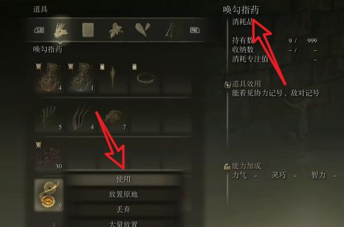 首頁 艾爾登法環 問答 艾爾登法環喚勾指葯怎麼用? 2022-07-29 1、打開艾爾登法環,在菜單欄點擊置物包。如下圖所示:2、然後找到喚勾指葯,點擊使用。如下圖所示:3、之後會顯示隊友的金色標記,點擊召喚隊友即可。如下圖所示: