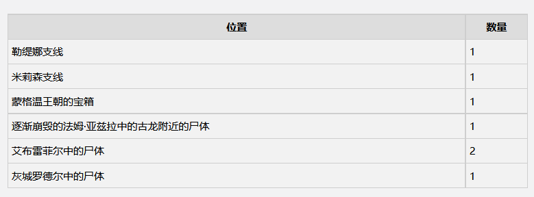 一周目有7個古龍岩失色鍛造石。獲取的地址分別是:勒緹娜支線可獲得1個、米莉森支線可獲得1個、蒙格溫王朝的寶箱可獲得1個、逐漸崩毀的法姆·亞茲拉中的古龍附近的屍體可獲得1個、艾布雷菲爾中的屍體可獲得2個、灰城羅德爾中的屍體可獲得1個。