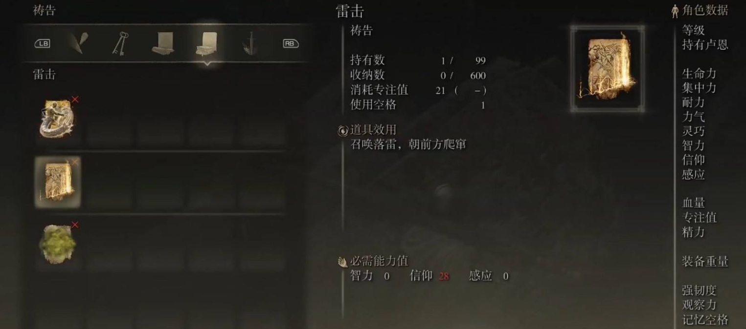 首頁 艾爾登法環 問答 艾爾登法環雷擊在哪? 2022-07-31 艾爾登法環雷擊的獲取位置:1、在艾爾登法環中,找到小黃金樹右側的溝壑,前往該處。2、到達位置後,控制角色從溝壑的界碑上,一階一階的跳下去。3、到達下方後,擊敗發光的小球,即可獲得禱告:雷擊。