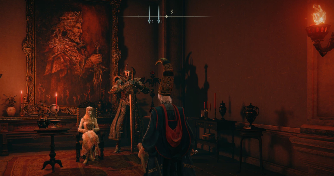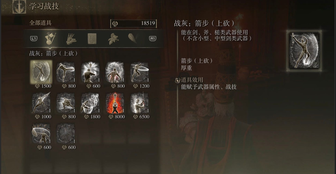4、返回火山官邸,和坐著的妹妹對話,再回到餐廳房間和坐著的白色NPC對話,他會說初步認可你,然後開啟他的商人交易界面,在這里就可以購買無戰技戰灰了。