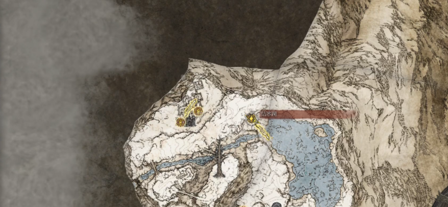 艾爾登法環冰龍在結冰河裡,打開地圖就可以看到這個位置,如下圖所示。