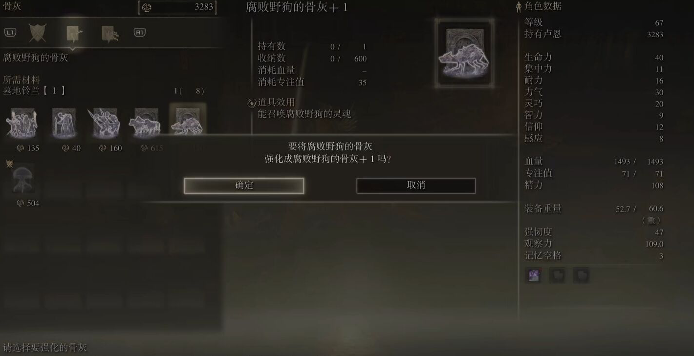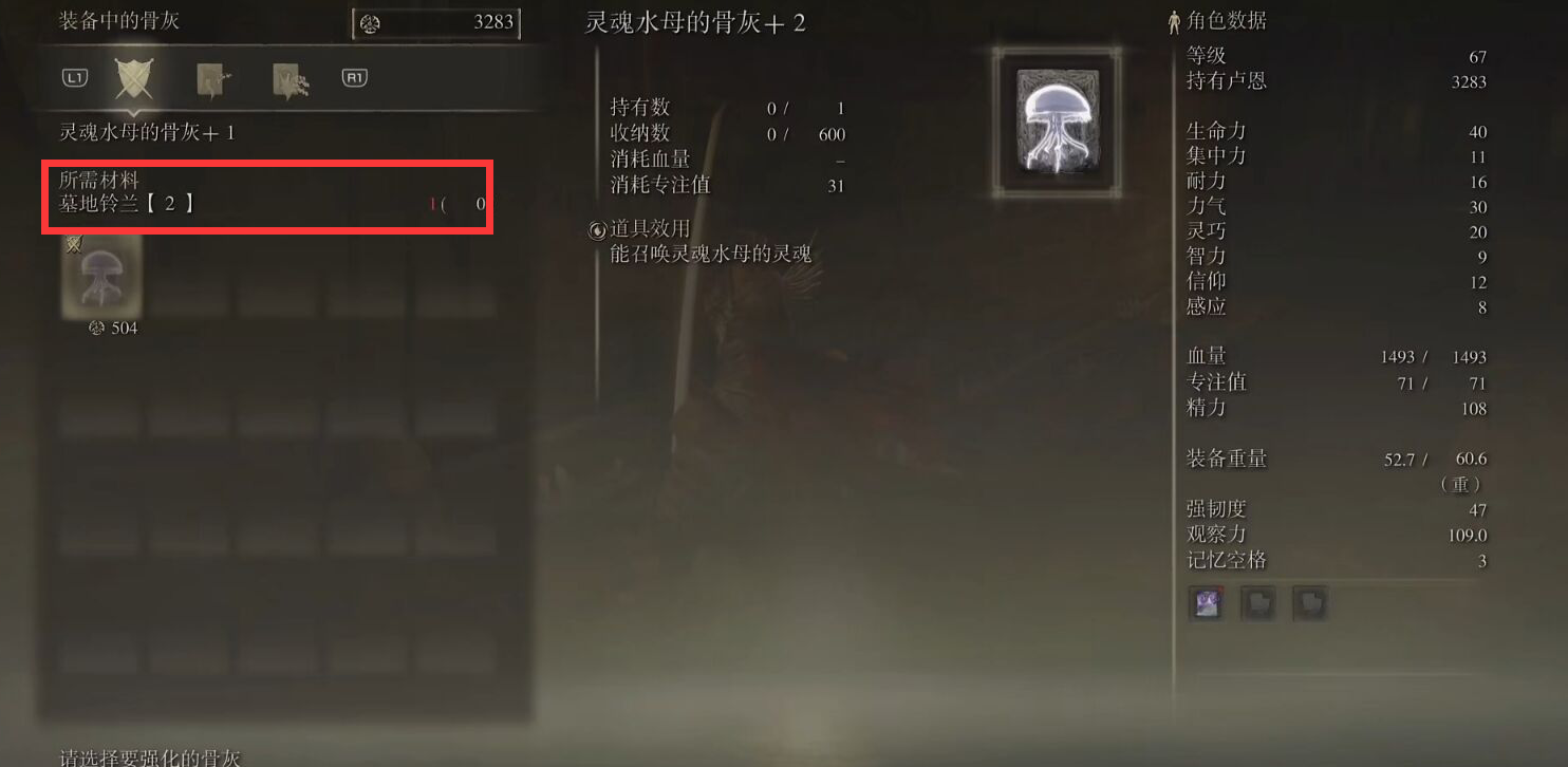 4、可以看到強化骨灰需要墓地鈴蘭。選擇你需要強化的骨灰即可看到強化所需材料。