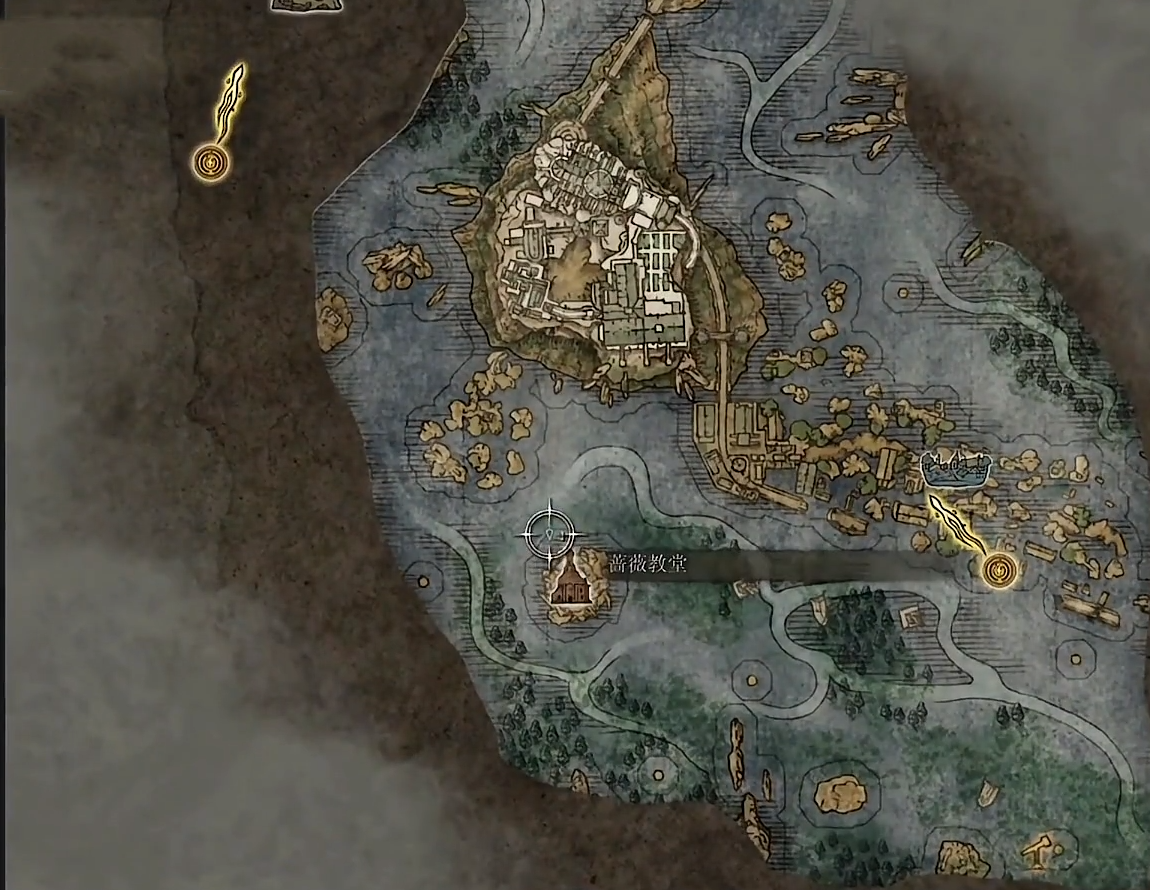 1、首先我們來到地圖的右上角,有一個薔薇教堂,在教堂的左上方做一個標記,具體位置如下圖所示: