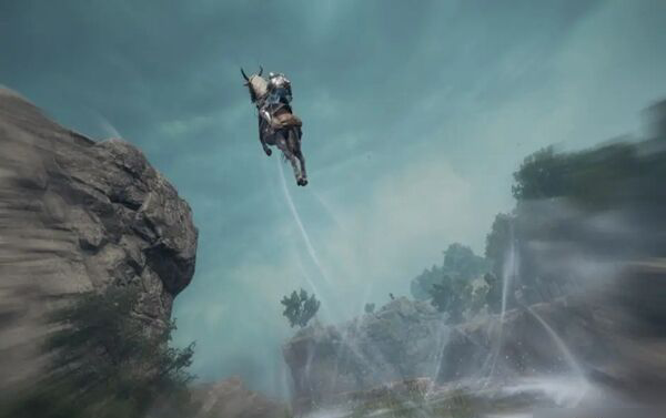 16.上升氣流?(Spirit Spring)跳躍:當在上升氣流旁騎行時,按下[A]按鈕將飛躍到空中。騎馬時跳入上升氣流不會受到摔落傷害,即使是從高處。