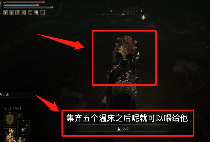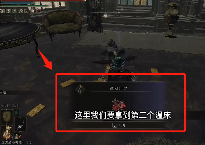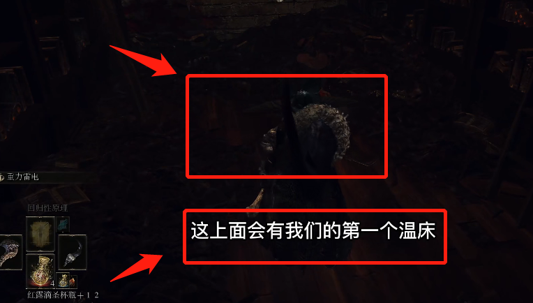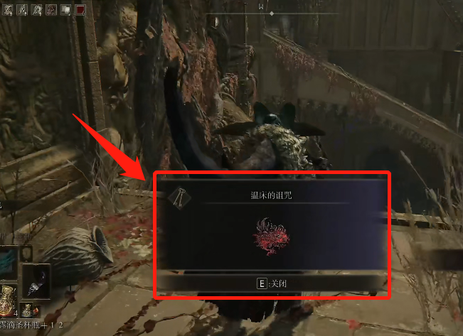 5、然後玩家在王城東邊城牆賜福出發,正常推圖,找到大賜福,食糞者在的地方,有個屍體,這是玩家能撿到得第一個溫床的詛咒。