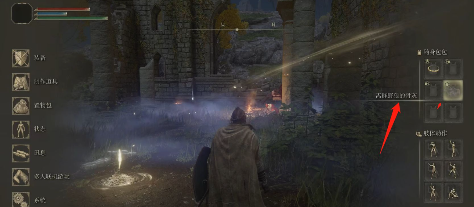 首頁 艾爾登法環 問答 艾爾登法環召咒魂鈴怎麼用? 2022-08-03 艾爾登法環召咒魂鈴的使用:1、首先打開界面,打開置物包;2、接著在隨身包包中裝備離群野狼的骨灰;3、然後在戰鬥中會顯示墓碑圖標;4、最後配合召魂鈴就能召喚出野狼協助戰鬥。