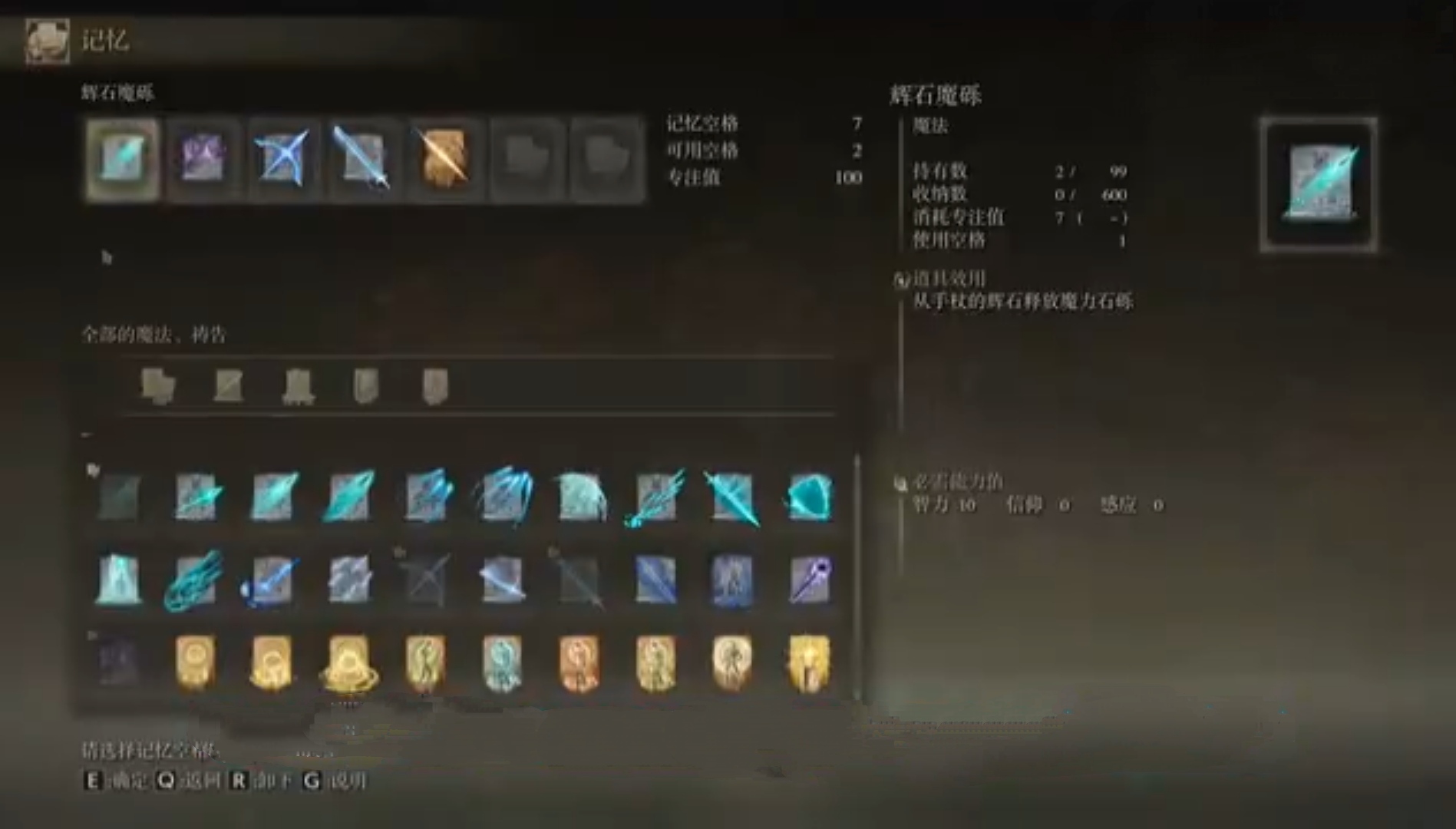 首頁 艾爾登法環 問答 艾爾登法環法術格子怎麼增加? 2022-08-03 初始只有兩個格子,想要擴充法術格子。第三個格子,第四個格子分別是在圓桌廳堂可以買到,還有通關魔法學院的紅狼boss。剩下的記憶格子需要在魔法塔裡面獲取。