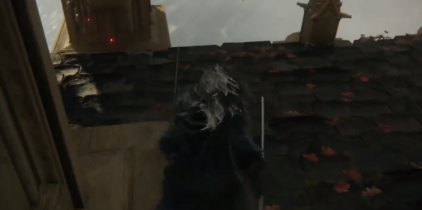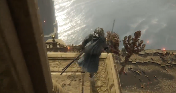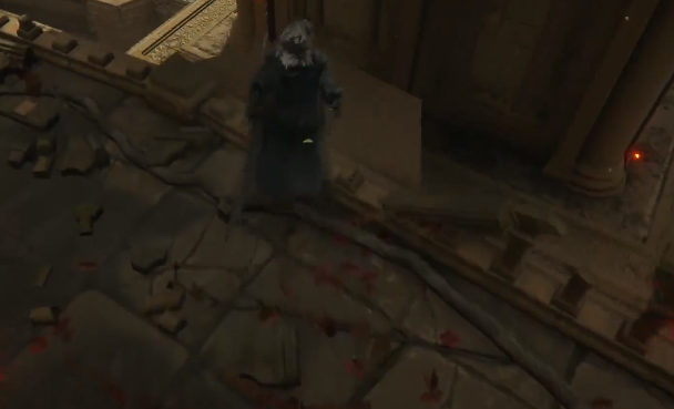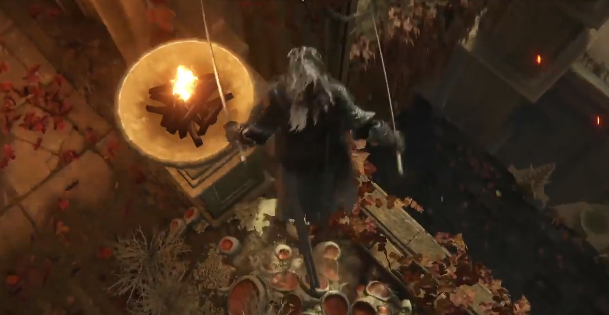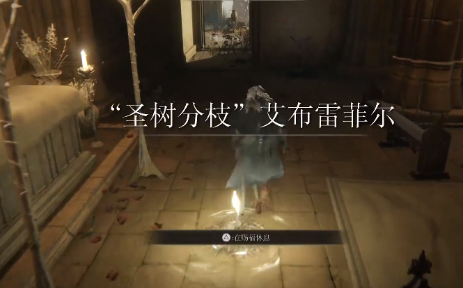 2、先傳送至祈禱室,抵達「聖樹分枝」艾布雷菲爾。出門左轉達到該位置(第一個火盆)後直接貼著牆,一路往下跳。