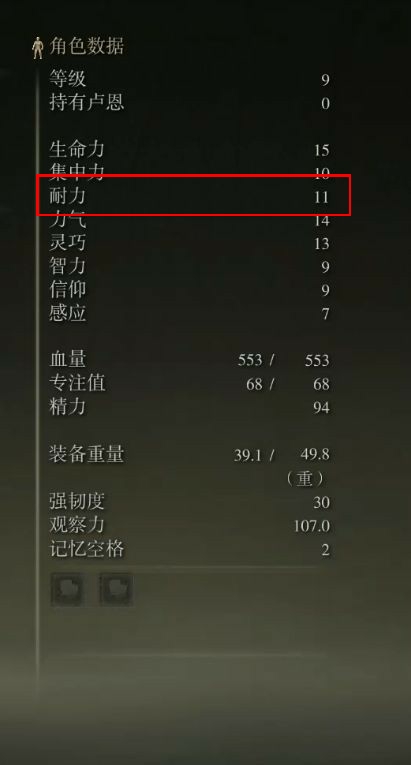 首頁 艾爾登法環 問答 艾爾登法環忍耐有什麼用? 2022-08-04 耐力:決定精力高低的能力值。也會影響健壯度,以及可承受的裝備重量上限。在中戰鬥時才會消耗精力,非戰鬥狀態下精力不會消耗,可自由奔跑。