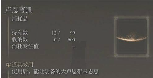 3最後裝備好了之後使用【盧恩彎弧】這個道具就能激活大盧恩的特效,這個道具是消耗品,用了就沒有了,但是可以讓角色獲得恩惠
