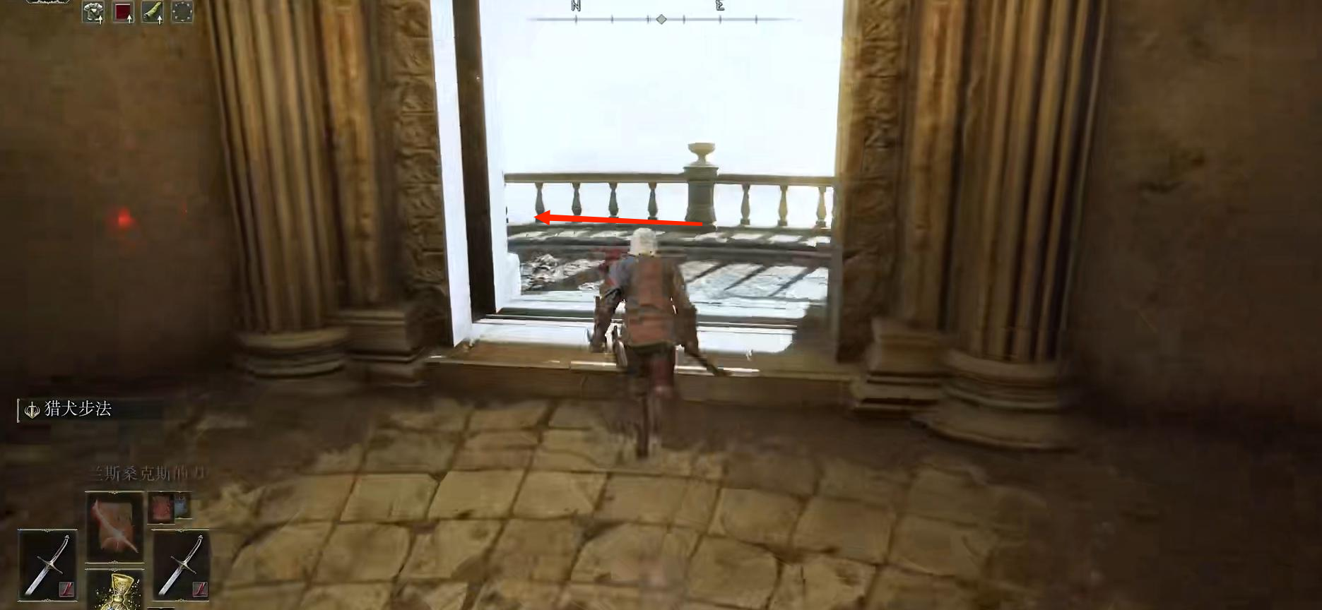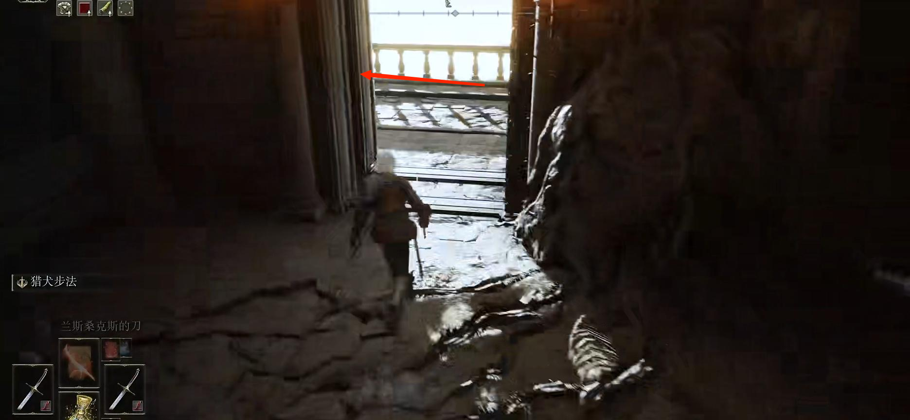 (3)在圖中這個位置左轉,然後向下走進入柱子旁的通道。