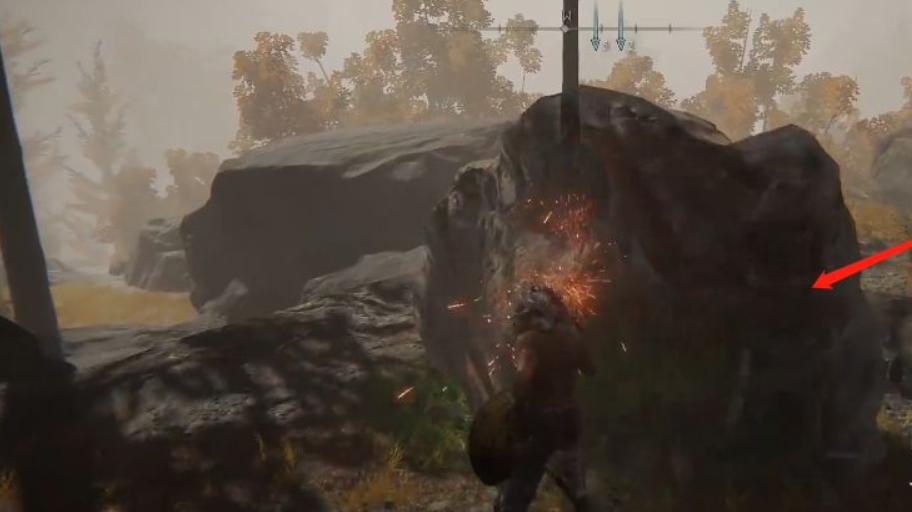 5、到達位置後,攻擊並擊碎山崖邊的石塊。