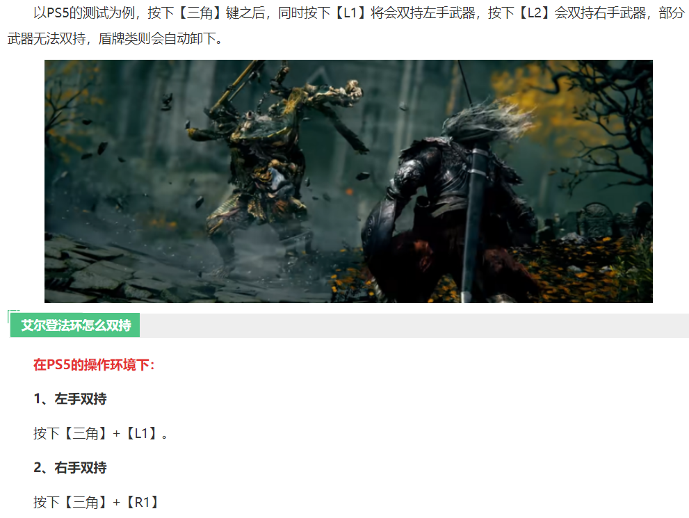 首頁 艾爾登法環 問答 艾爾登法環怎麼雙手拿劍? 2022-08-05 以PS5的測試為例,按下【三角】鍵之後,同時按下【L1】將會雙持左手武器,按下【L2】會雙持右手武器,部分武器無法雙持,盾牌類則會自動卸下。