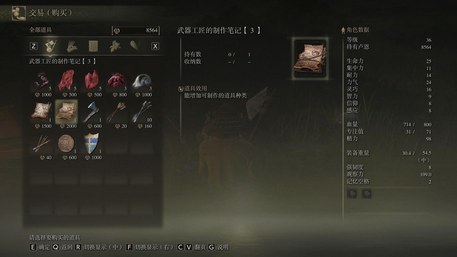 4,在這里我們選擇購買武器工匠的製作筆記3,這個筆記可以用來製作勇者肉塊。