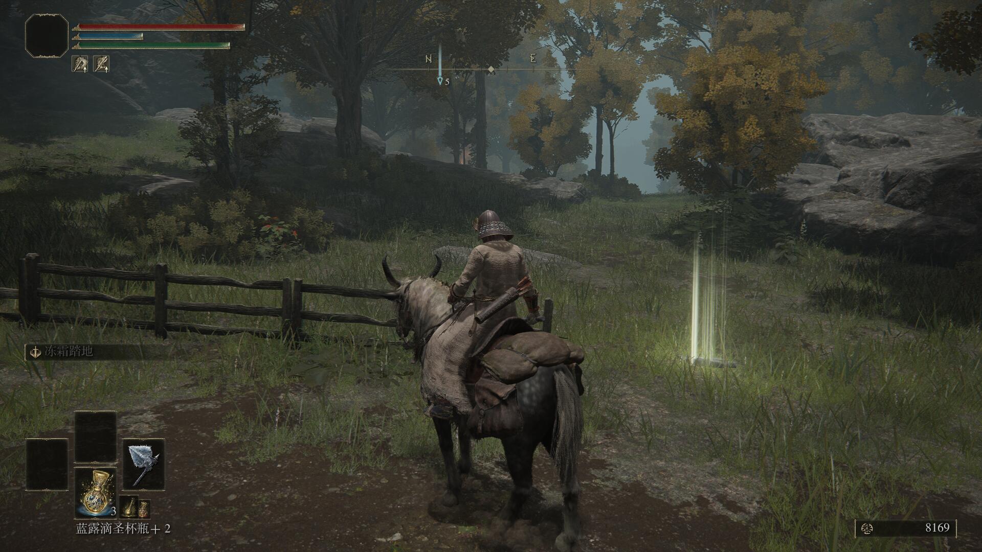 2,接著我們騎馬一路來到如圖所示地點,就可以發現這里有一個游標,,我們沿著游標往森林裡面走去。
