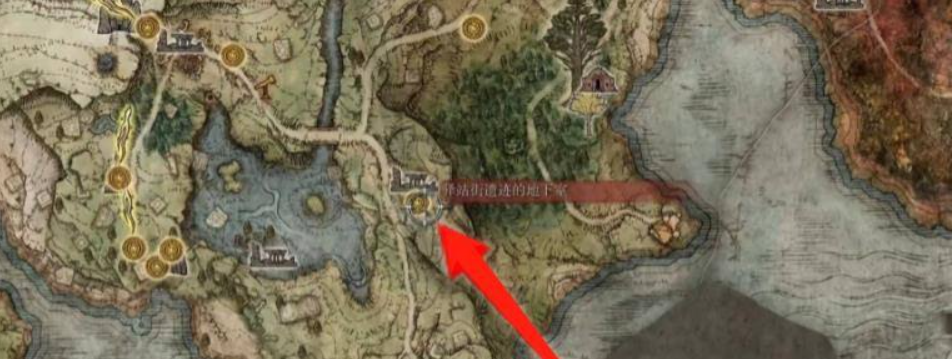1、首先,我們進入遊戲,打開地圖,移動至下圖所示的驛站街遺跡的地下室位置;