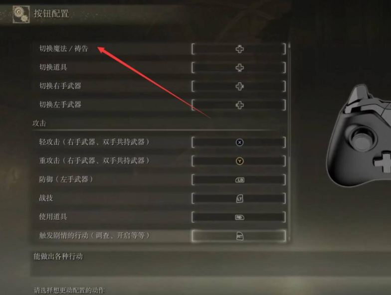 首頁 艾爾登法環 問答 老頭環觀星者怎麼換魔法? 2022-08-05 1.首先玩家打開遊戲,接著打開遊戲系統2.然後點擊上方的手柄圖標,如下圖所示3.接著點擊下方的按鈕配置4.然後進入頁面找到切換魔法/禱告選項,如下圖所示5.最後按下右側表示的按鈕就可以切換魔法/禱告了