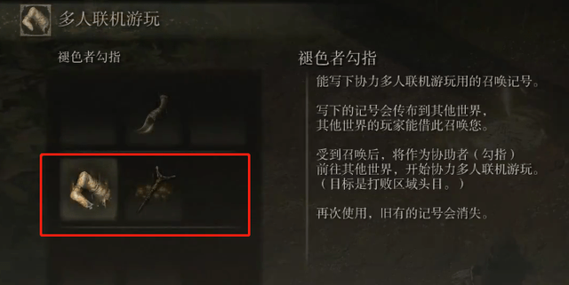2.然後點擊這個按鈕,這里需要注意的是,艾爾登法環聯機是需要兩個道具的,一個是喚勾指引,另一個是褪色者勾指