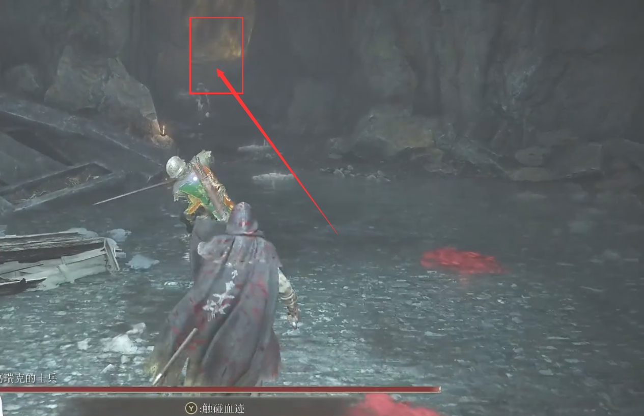 5.跳下大坑後,大坑內只有一條道路,玩家只需要一路砍殺過去,最後會遇到一個新手關BOSS「葛瑞克的士兵」,將其擊敗後繼續往士兵來的地方走。