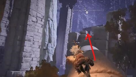 2、接著我們一路前進,來到左側傾斜的石柱上。
