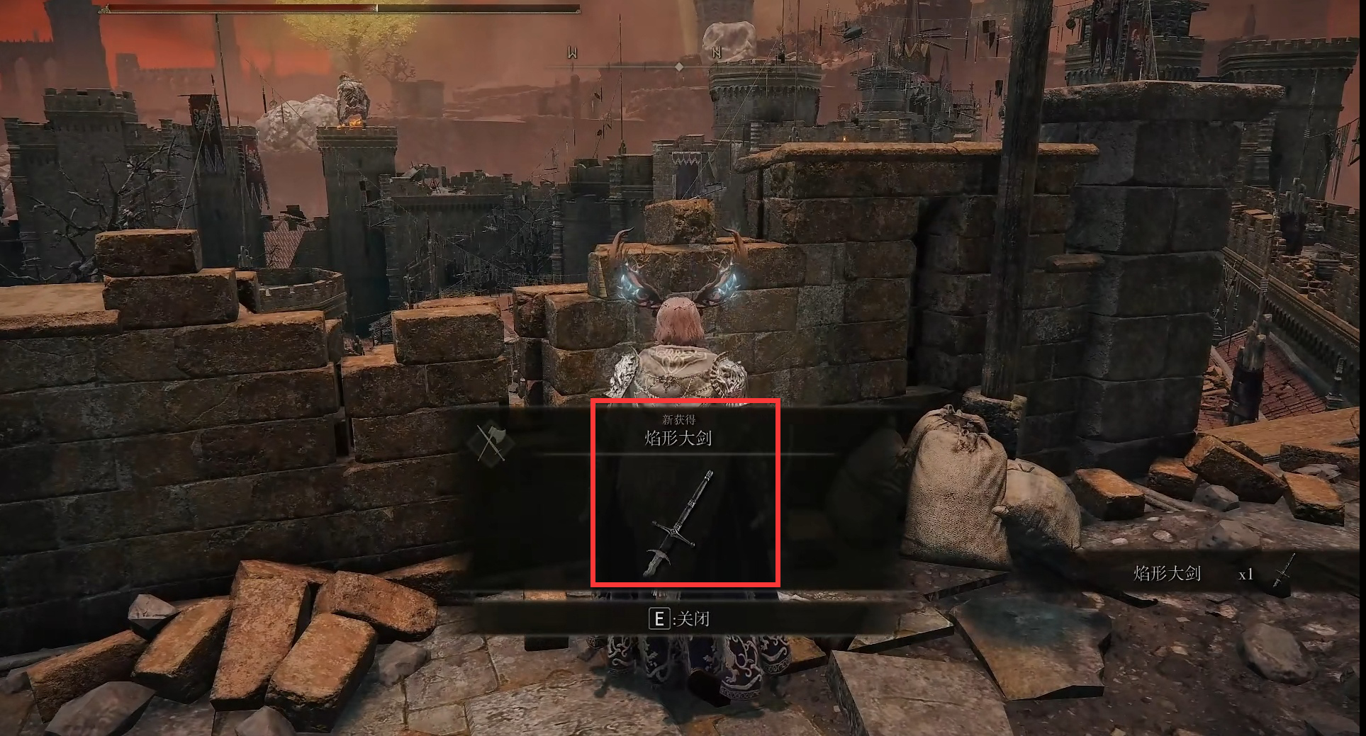 首頁 艾爾登法環 問答 艾爾登法環焰形大劍怎麼獲得? 2022-08-06 1.來到廣場前房間。2.往圖中方向進去。3.進來後點擊爬山爬樓梯。4.上來後打敗這個南瓜人。5.然後到牆邊點擊搜刮屍體。6.即可獲得焰形大劍。