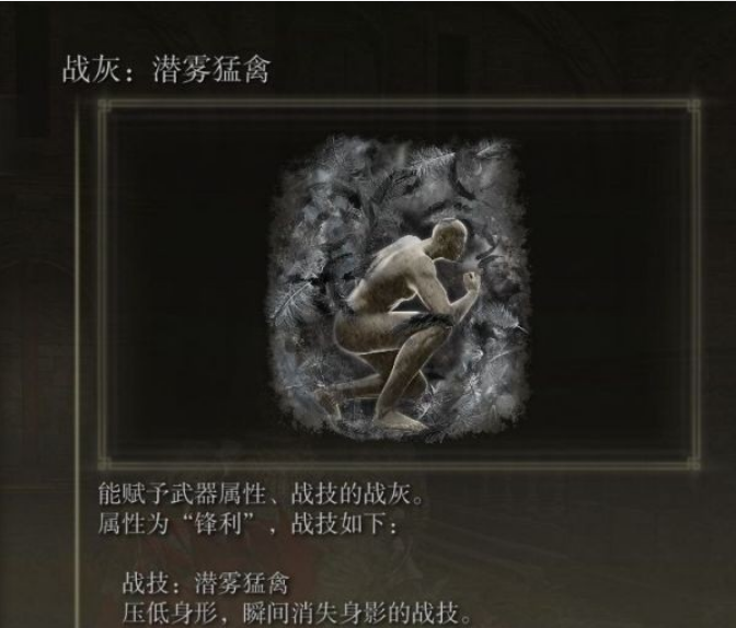 首頁 艾爾登法環 問答 艾爾登法環潛霧猛禽怎麼用? 2022-08-06 用在武器身上賦予屬性,艾爾登法環潛霧猛禽屬於戰灰,能夠賦予武器屬性,戰技的戰灰,屬性為鋒利並且戰技為潛霧猛禽(壓低身形,瞬間消失)。