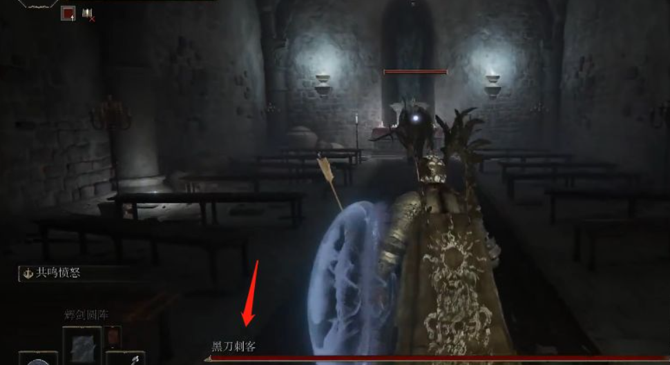 6、然後,穿過霧氣屏障進入房間,攻擊黑刀刺客。