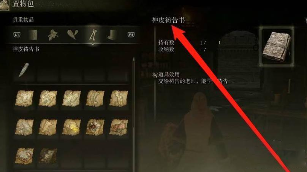 3、然後,在樓梯上方,會看到一個房間,使用石劍鑰匙進入房間,即可在寶箱中找到並獲取神皮禱告書。