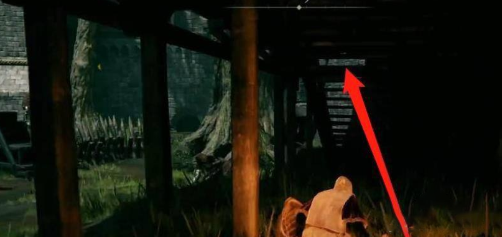 2、接著,我們到達目的地後,來到下圖所示的位置,並爬上樓梯。