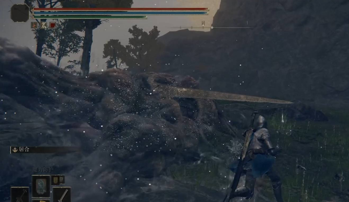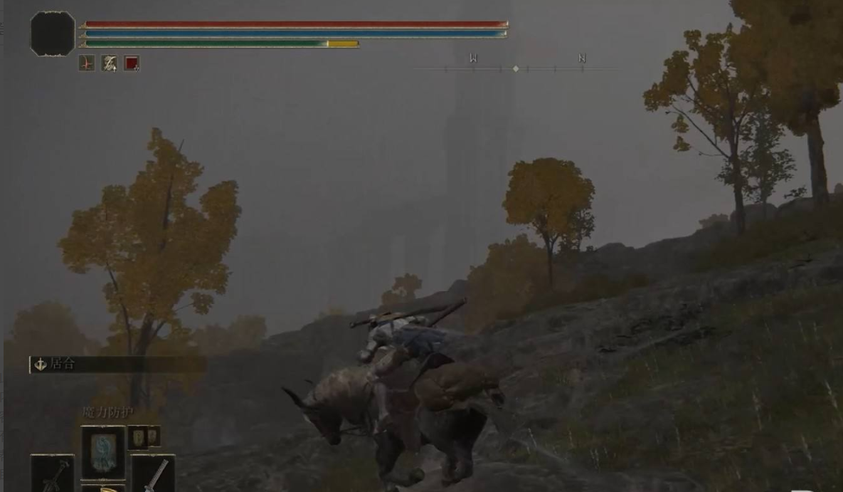1、打開艾爾登法環游戲後打開地圖,我們騎上馬去在風暴關卡尋找巨人,遭遇巨人。