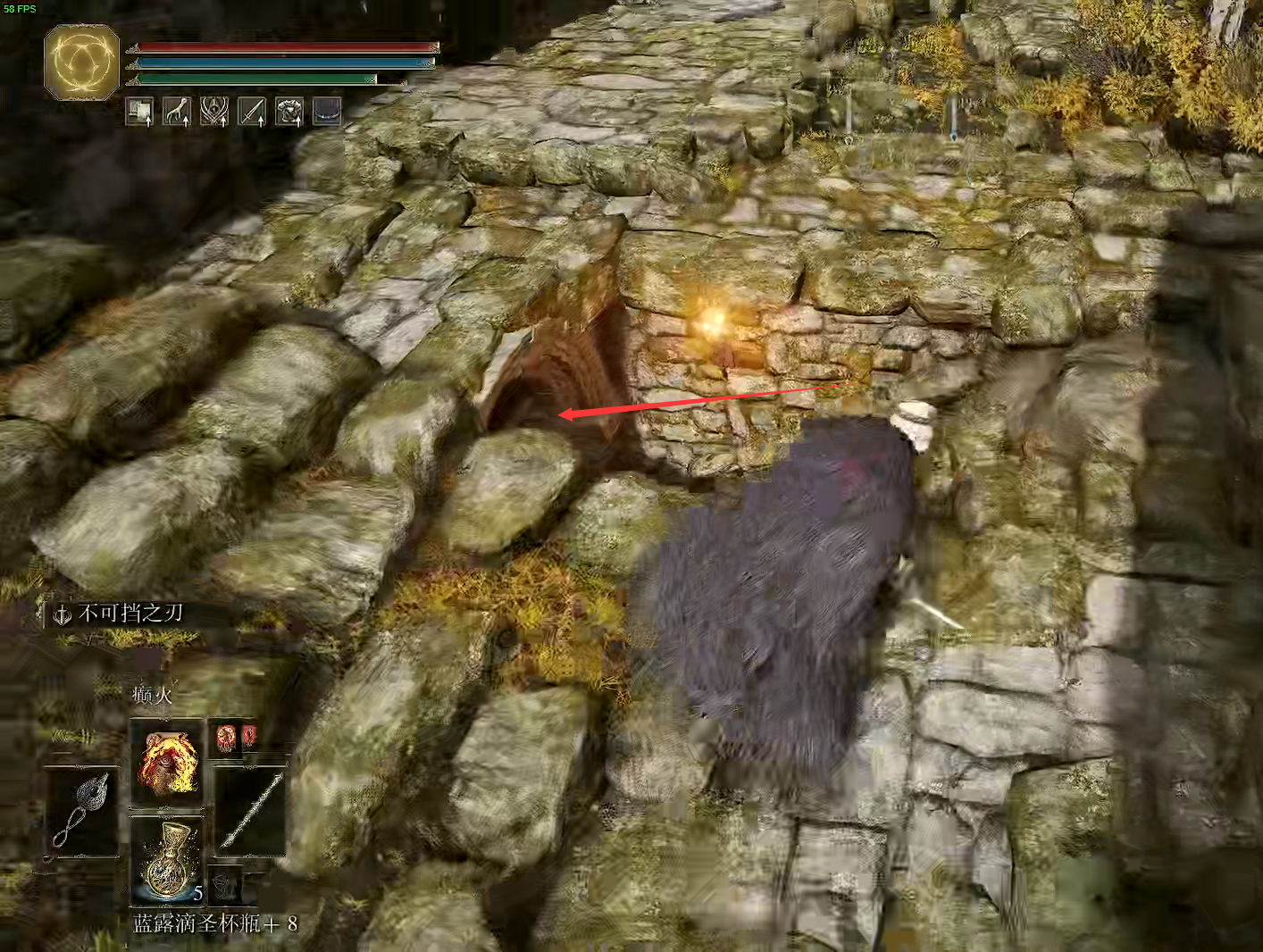 3、上去之後,我們往樓梯的方向跑,不上去,往旁邊走,翻滾一下或者打一下,盧克斯廢墟的地下室就出來了,