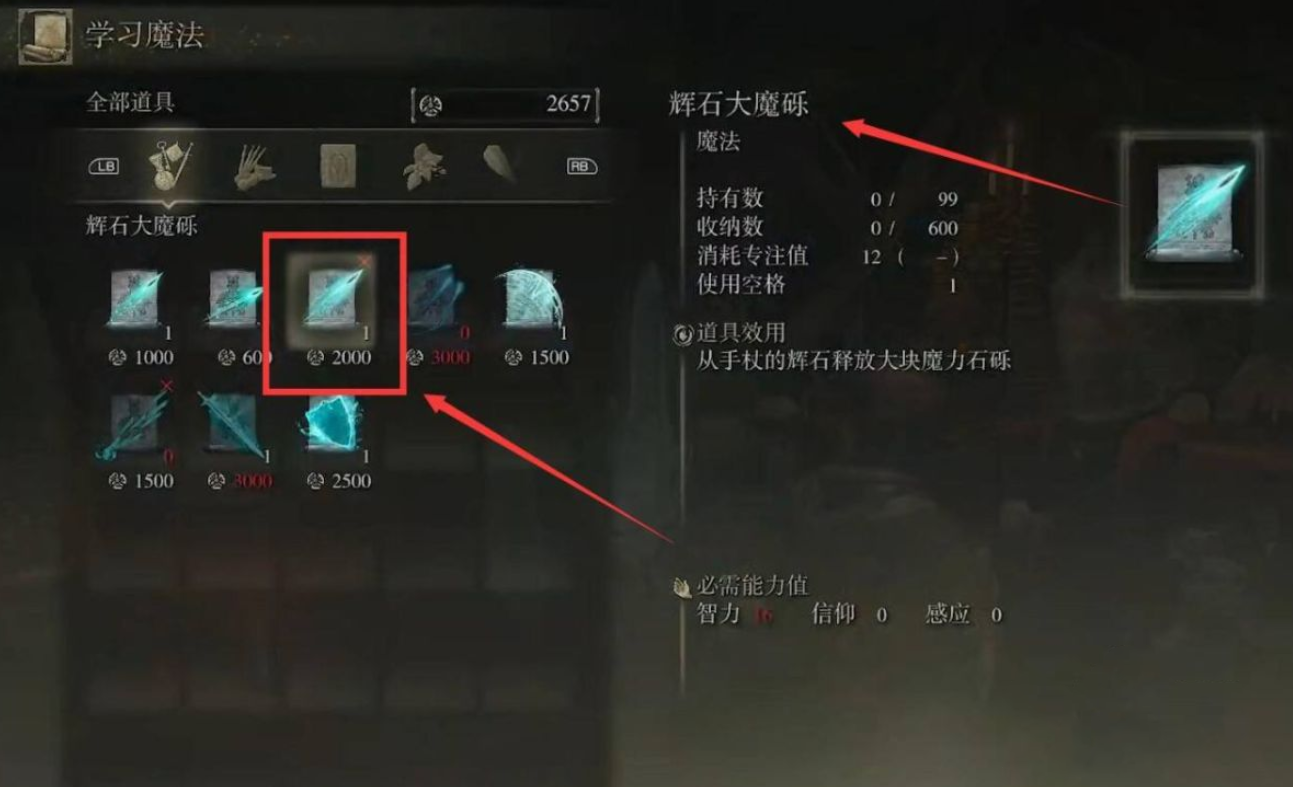 首頁 艾爾登法環 問答 艾爾登法環輝石大魔礫怎麼獲得? 2022-08-06 1、第一步,進入遊戲,在遊戲中預先獲得學院卷軸。2、第二步,到達驛站街遺跡的地下室找到魔法師瑟濂,將學院卷軸交付給她。3、第三步,點擊左側的學習魔法選項。4、第四步,進頁面中選擇輝石大魔礫,點擊左下角的購買後就可以獲取了。