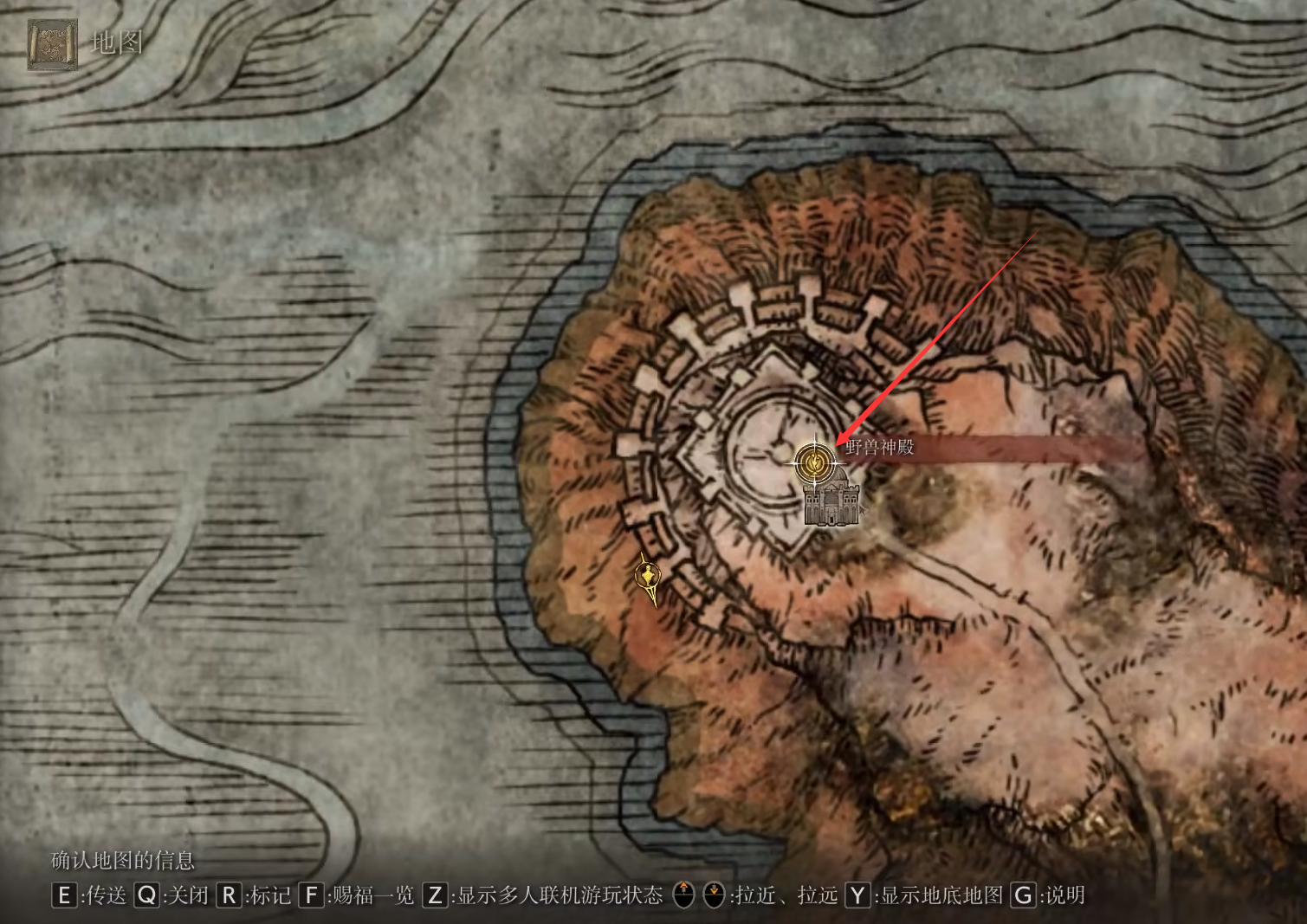 1、首先我們傳送到野獸神殿,大地圖位置如下圖所示: