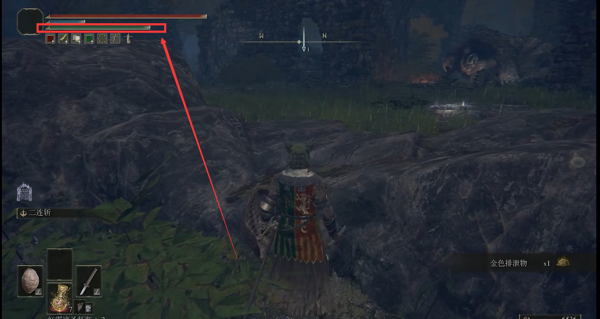 在艾爾登法環遊戲中是有精力槽的,就是在左上方玩家的人物角色會有三條顏色不同的槽,最下面那條綠色的槽就是精力槽了。