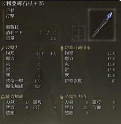 艾爾登法環遊戲中卡利亞輝石杖還是很強的。該石杖的攻擊力和防禦能力都很強,加點時可以主點智力,還可以強化卡利亞劍的魔法。