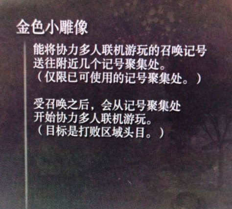 首頁 艾爾登法環 問答 艾爾登法環金色小雕像有什麼用? 2022-08-07 聯機用的,能將協力多人聯機遊玩的召喚記號送往附近幾個記號聚集處。(僅限已可使用的記號聚集處。)受召喚之後,會從記號聚集處開始協力多人聯機遊玩。